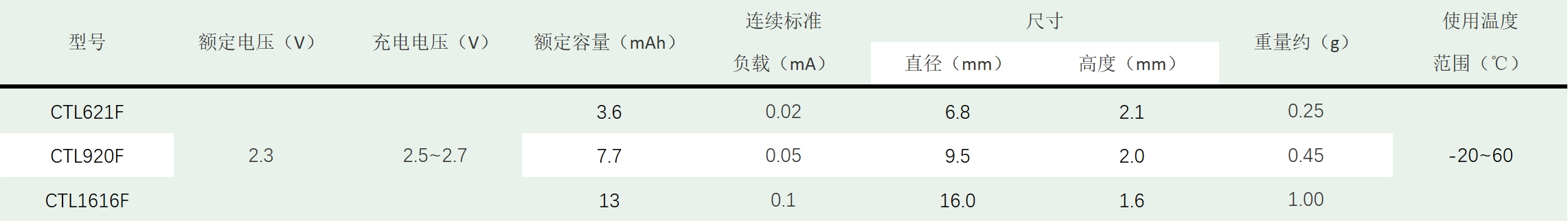CTL系列扣式可充电电池